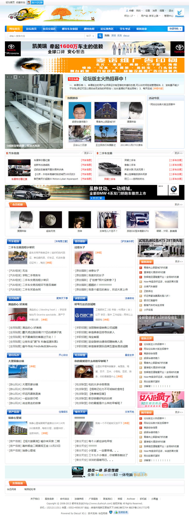都市車友會(huì)是蚌埠地區(qū)最具影響力的百姓生活信息網(wǎng)絡(luò)平臺(tái),擁有超過(guò)4萬(wàn)的注冊(cè)會(huì)員,承辦過(guò)“珠城十佳人民警察”評(píng)選、“雙十佳”法官檢察官評(píng)選、十佳律師評(píng)選、“珠城百姓口碑榜”評(píng)選、“心動(dòng)2011——讓我們邂逅在龍子湖畔”大型交友聯(lián)誼會(huì)等大型活動(dòng)。