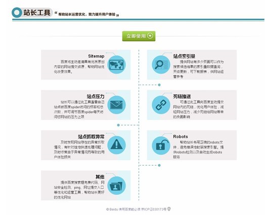站長(zhǎng)可以通過(guò)工具區(qū)提供的死鏈推送、站點(diǎn)索引量查詢(xún)、站點(diǎn)抓取報(bào)錯(cuò)查詢(xún)、robots工具、站點(diǎn)壓力反饋和網(wǎng)站安全監(jiān)測(cè)等功能,減輕網(wǎng)站服務(wù)器壓力,提升網(wǎng)頁(yè)抓取效率和質(zhì)量,減少網(wǎng)站安全隱患,從而實(shí)現(xiàn)網(wǎng)站的精細(xì)化運(yùn)營(yíng)。資料區(qū)提供了搜索優(yōu)化案例、工具使用說(shuō)明、網(wǎng)站運(yùn)營(yíng)經(jīng)驗(yàn)文檔,幫助站長(zhǎng)汲取網(wǎng)站運(yùn)營(yíng)經(jīng)驗(yàn)、夯實(shí)理論基礎(chǔ);站長(zhǎng)社區(qū)的則是站長(zhǎng)間溝通和分享的平臺(tái),既會(huì)定期組織交流活動(dòng)和分享討論,,有利于站長(zhǎng)們?nèi)¢L(zhǎng)補(bǔ)短提升網(wǎng)站運(yùn)作技巧,解決站長(zhǎng)面臨的典型問(wèn)題。